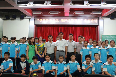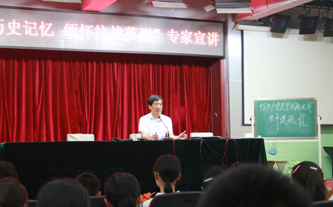 人民網(wǎng)邯鄲7月23日電(陸加杰 于紅林 李兵兵 徐于凡)7月22日-24日,由中央網(wǎng)信辦、中央黨史研究室指導(dǎo),人民網(wǎng)聯(lián)合河北、內(nèi)蒙古、遼寧、吉林、黑龍江、重慶、四川、貴州8省區(qū)市共同主辦的“尋找歷史記憶 緬懷抗戰(zhàn)英烈——紀(jì)念抗日戰(zhàn)爭(zhēng)勝利70周年系列活動(dòng)”在河北邯鄲啟動(dòng)!包h史專家進(jìn)校園”是此次系列活動(dòng)的重要組成部分,23日下午,中央黨史研究室宣傳教育局原副局長(zhǎng)薛慶超來(lái)到邯鄲市廣泰中學(xué),以“中國(guó)共產(chǎn)黨是全民族抗戰(zhàn)的中流砥柱”為題,為該校師生講述了一堂生動(dòng)的抗戰(zhàn)歷史課。
