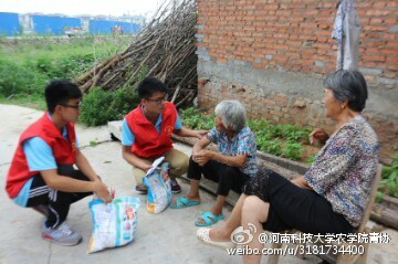 高校志愿團(tuán)隊不僅幫助留守兒童健康成長,也幫助孤殘老人重新燃起對生活的美好希望。青島農(nóng)業(yè)大學(xué)筑愛圓夢服務(wù)團(tuán)和河南科技大學(xué)留守老人關(guān)愛團(tuán)同時都在關(guān)注農(nóng)村孤殘老人的生活,老人們十分需要關(guān)愛和溫暖。志愿者們深入老人家中走訪談心,耐心地為老人答疑解惑、做家務(wù),還為留守老人們送去實用的生活用品,叮囑他們注意身體。在力所能及幫老人做些事情的同時,同學(xué)們也在不斷呼吁更多的社會愛心人士去關(guān)注他們、幫助他們。