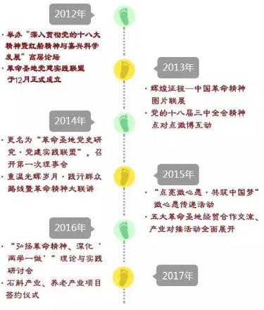 2012年12月,在嘉興、井岡山、遵義、延安、石家莊市委組織部的共同倡議和精心策劃下,五地組建成立“革命圣地黨建實(shí)踐聯(lián)盟”。2014年,聯(lián)盟更名為“革命圣地黨史研究?黨建實(shí)踐聯(lián)盟”,并在中央黨史研究室設(shè)立聯(lián)盟聯(lián)絡(luò)處。聯(lián)盟自成立以來(lái),已先后舉辦中國(guó)革命精神圖片展、群眾路線(xiàn)革命圣地行等大型主題活動(dòng)。此次現(xiàn)場(chǎng)考察和理論實(shí)踐研討活動(dòng),五地代表分別就扎實(shí)推進(jìn)“兩學(xué)一做”學(xué)習(xí)教育及黨史研究工作開(kāi)展了深入交流。